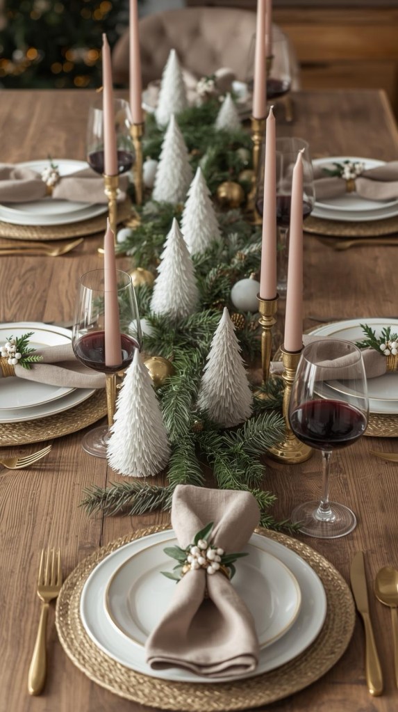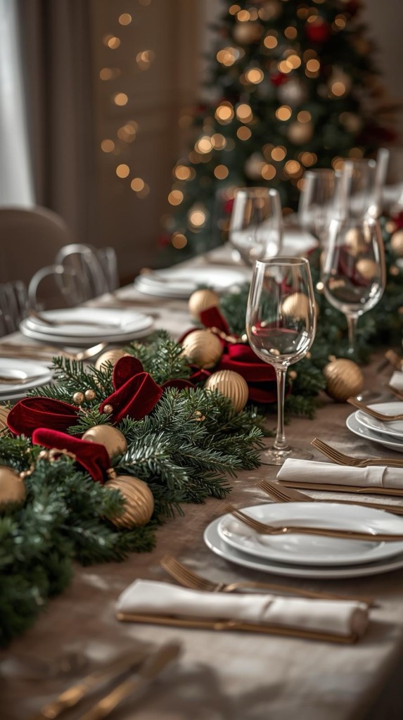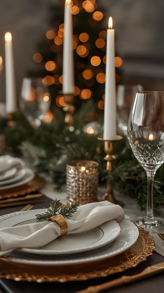 This style turns any dinner into a celebration. It’s elegant, elevated, and surprisingly easy to recreate when you mix classic evergreen with gold tones.