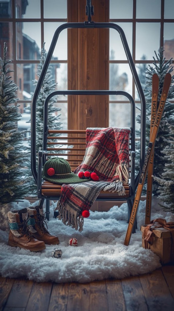 Après-ski decor is all about comfort meets rustic elegance. Think of spaces that feel warm after a day in the cold — layered textiles, soft lighting, natural wood, and winter-inspired accents.