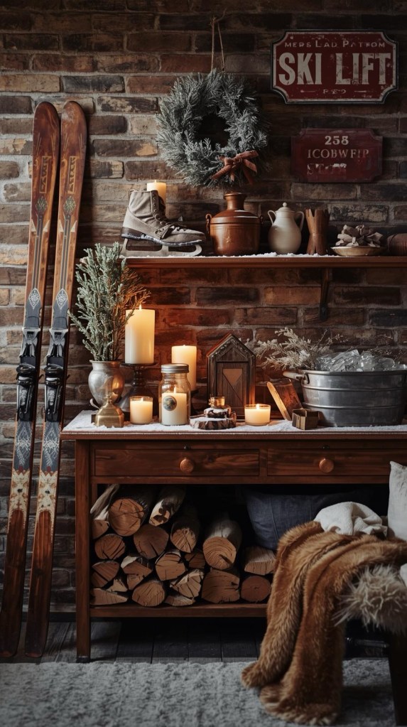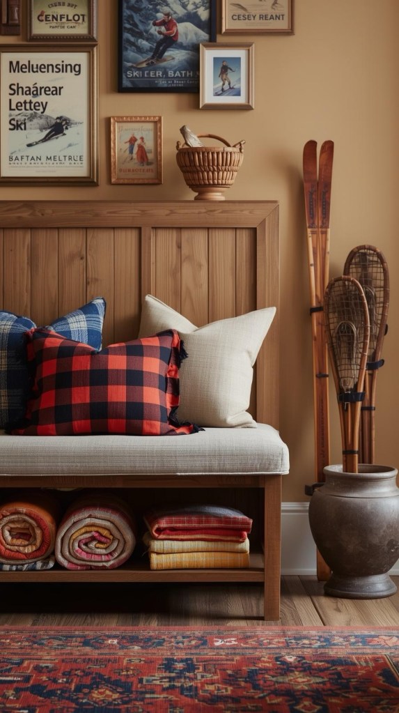 Après-ski decor shines when you mix functional pieces with rustic charm.